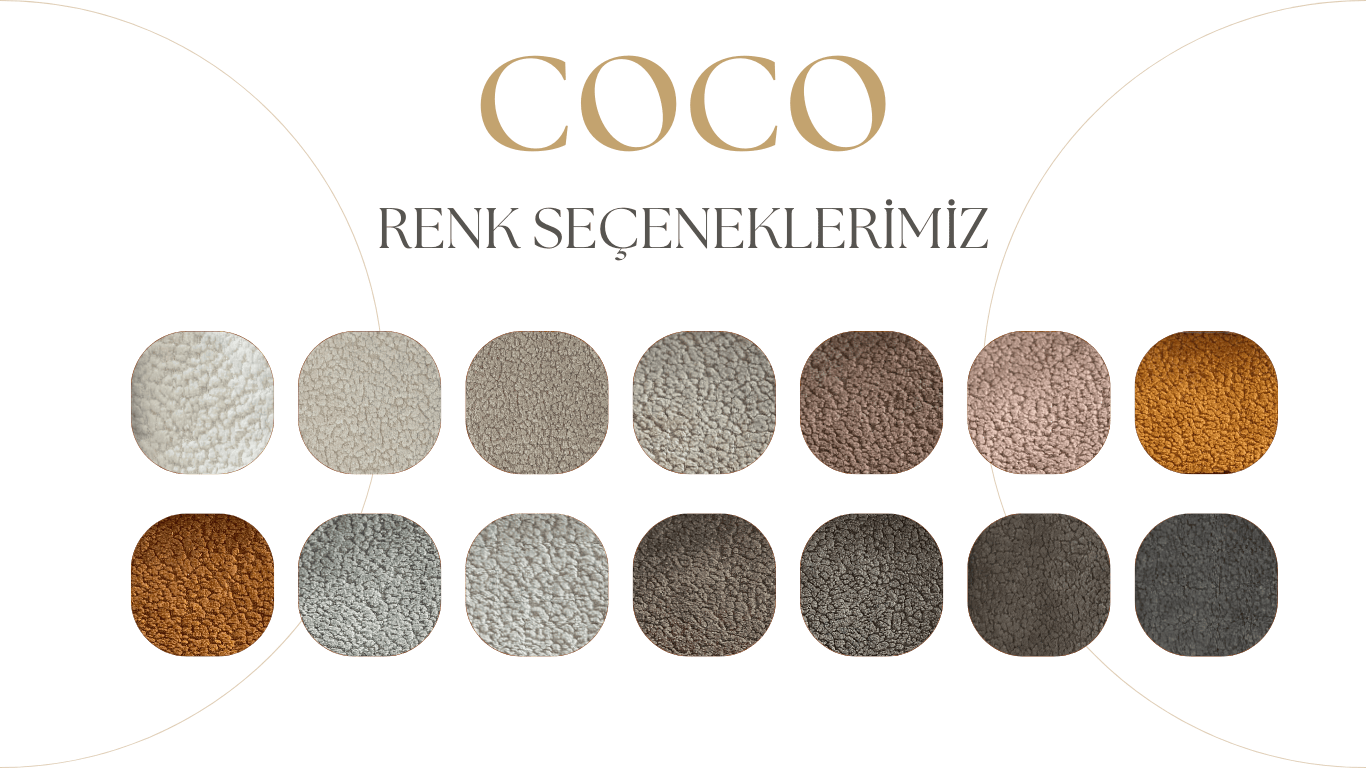 COCO kumaş koleksiyonu, belirgin dokusu ve yumuşak yüzeyiyle yaşam alanlarına sıcak ve samimi bir karakter kazandırır.