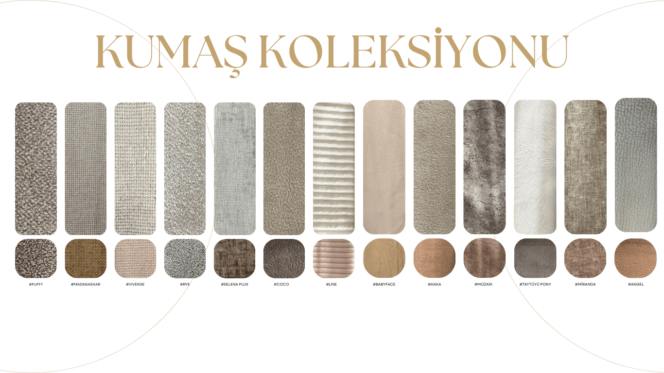 Kumaş kartelalarımız, farklı doku ve renk seçenekleriyle geniş ürün yelpazemizi bir arada sunar. Babyface, Madagaskar, Mozaik, Rye, Selena Plus, Coco, Puffy, Line, Miranda, Anka, Angel ve TayTüyü Ponny koleksiyonları; kalite, uyum ve kullanım konforu gözetilerek özenle hazırlanmıştır. Kumaş toptancısı olarak, üreticiler ve profesyonel uygulamalar için güvenilir ve sürdürülebilir çözümler sunmaktayız. Zamansız tonlardan karakterli renklere uzanan bu seçki, farklı dekorasyon anlayışlarına uyum sağlarken uzun ömürlü bir kullanım sunar.