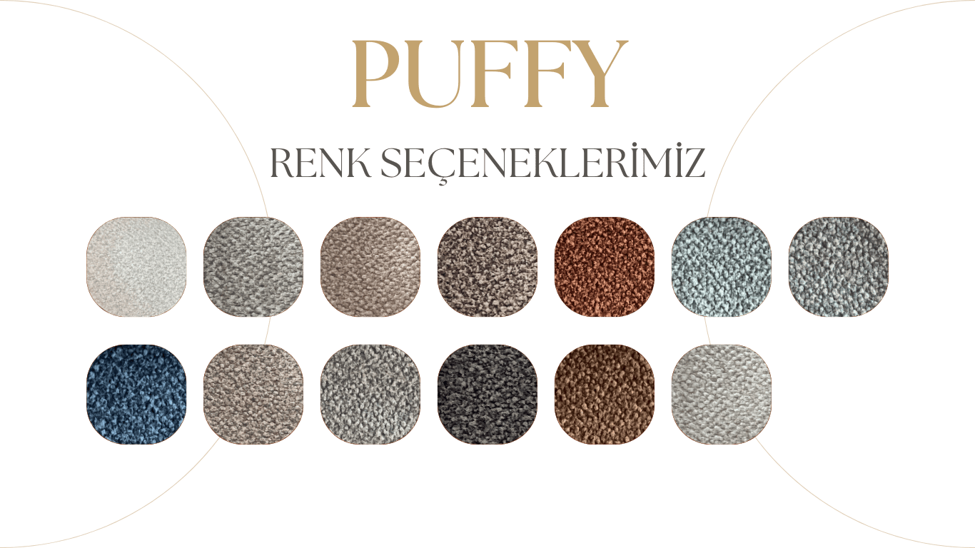 PUFFY kumaş koleksiyonu, dolgun dokusu ve yumuşak yüzeyiyle yaşam alanlarına sıcak ve davetkâr bir his kazandırır.